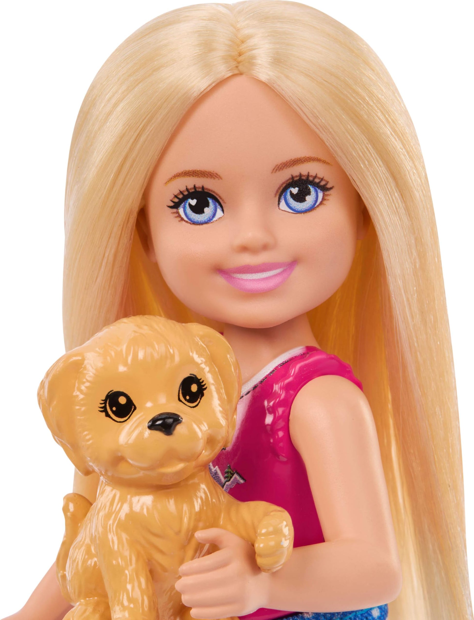 - The Chelsea Outdoor Adventures playset inspires storytelling and campfire fun with Chelsea small doll, her pet puppy and 5+ themed accessories!