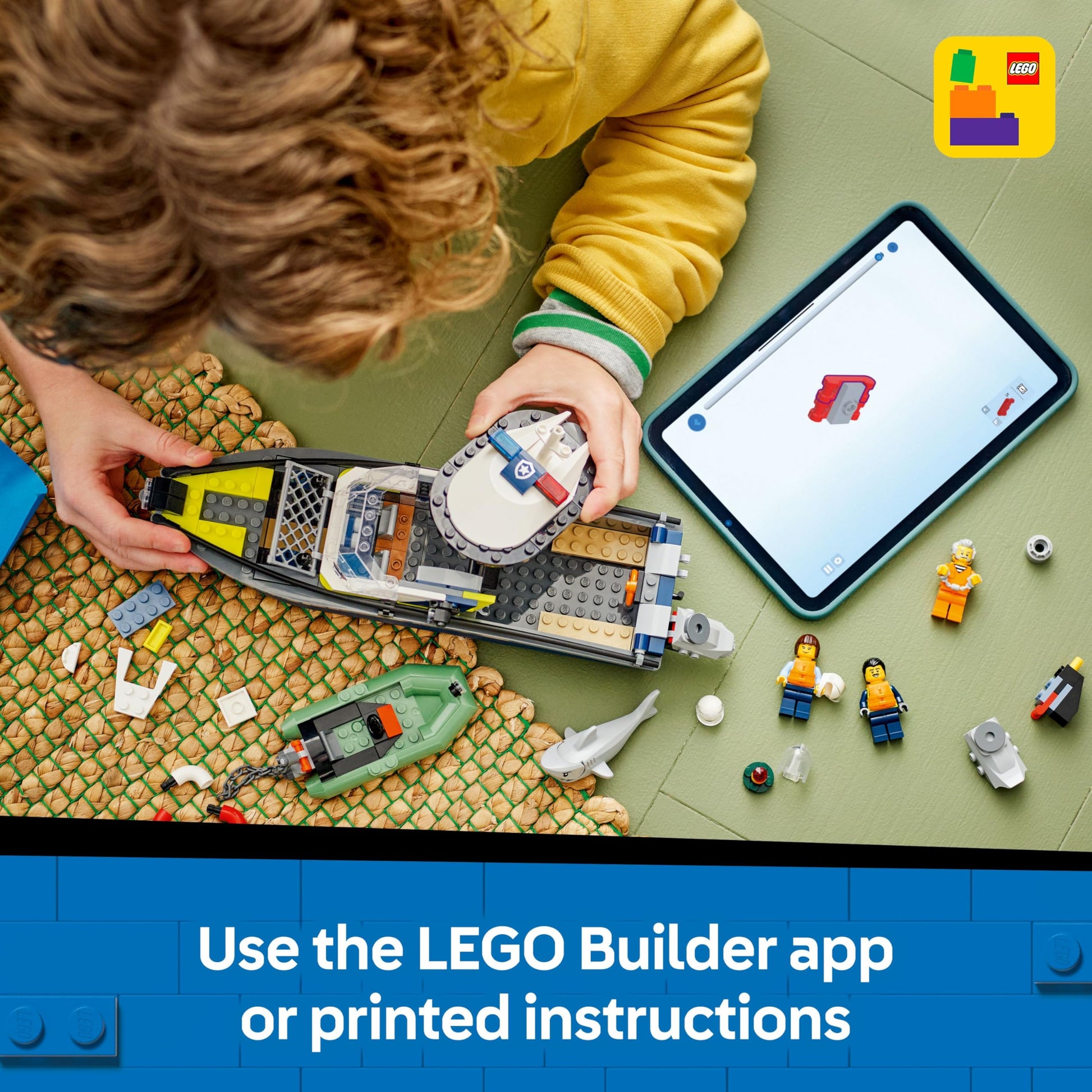 - What’s in the box? – Includes everything needed to build a toy boat, crook’s power dinghy, two police officer LEGO minifigures, a crook minifigure and a shark animal figure for ocean fun