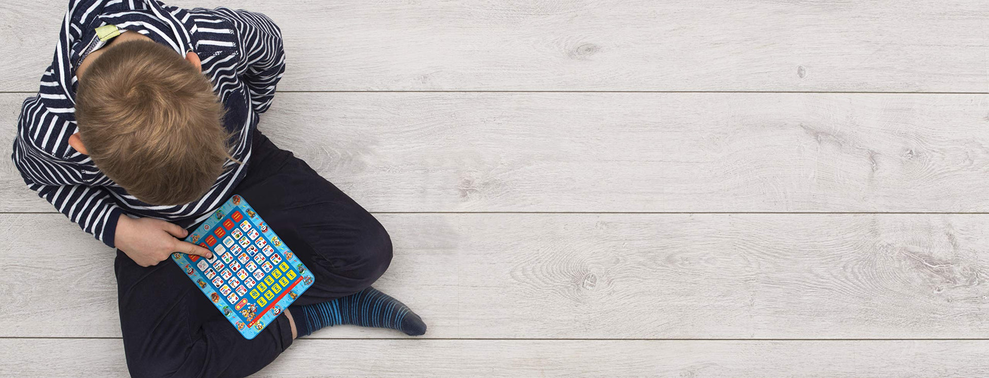 - Touch-sensitive tablet with sounds: press any button and the tablet will announce the matching letter, number or word.