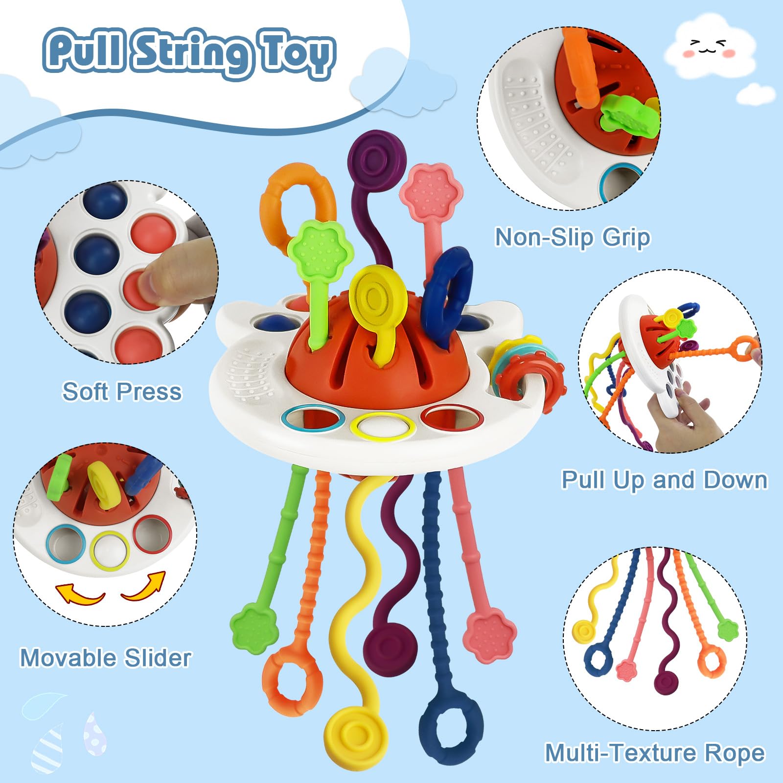 - 【Multi-Sensory Toys】6 different strings, smooth edges in shape of cute octopus. Colorful multi-sensory toys for toddlers to play with.