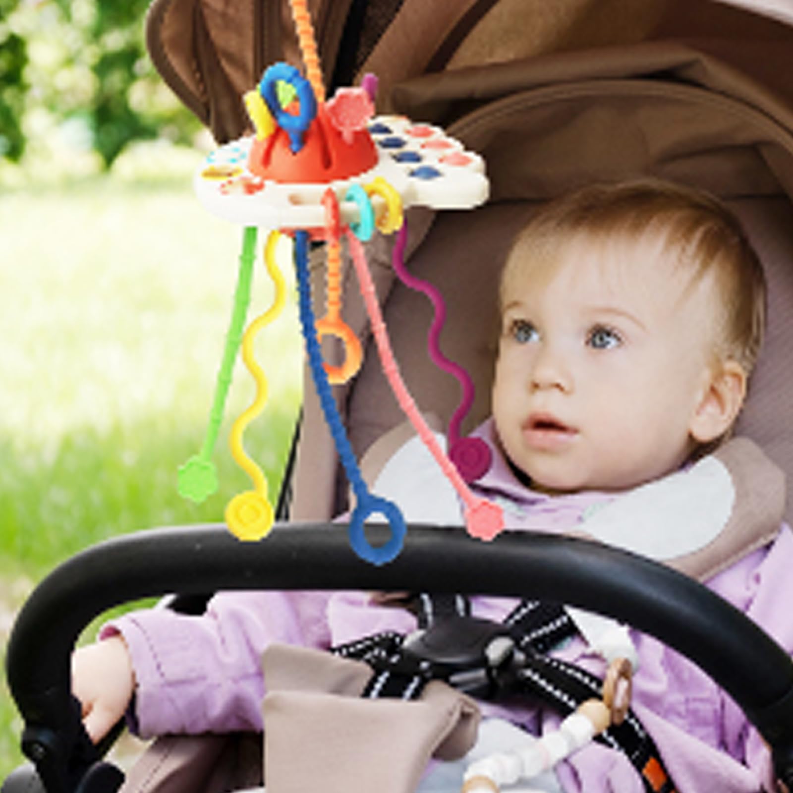 - 【Fine Motor Skills Toy】This educational toy for 1+ year old uses bright colors which inspire baby's vision development.The aircraft design makes it easy for babies to grasp and hold. Textured cords and easy to hold grips promote motor skills, sensory exploration,fine motor skills and hand-eye coordination.