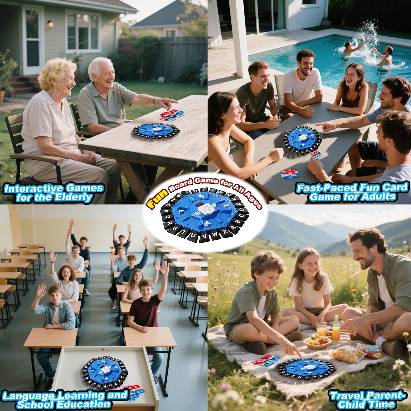 - đăEducational Fun and Skills DevelopmentăThe table game offers a fantastic way to enhance vocabulary, quick thinking, and spelling skills. This board game is perfect for interactive educational fun at home, school, or gatherings. This tabletop word game combines entertainment with intellectual challenge, pushing your brain's response time as you race to find the right words. Sharpen your language skills and quick thinking while adding an innovative twist to family game nights.